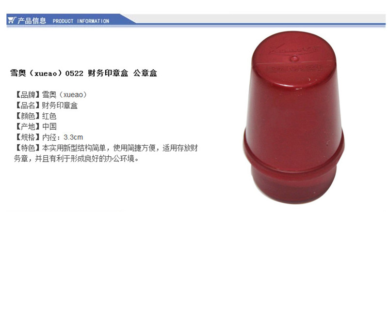 雪奧(XUEAO) 0522 財務(wù)印章盒 公章盒內(nèi)徑:3.3cm