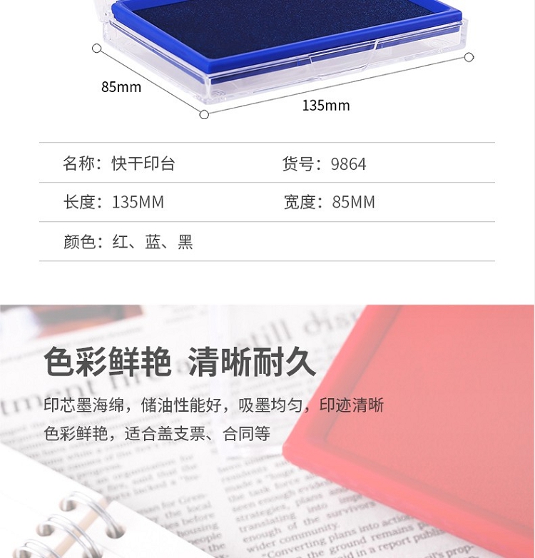 得力(deli) 9864 方形透明外殼快干印臺(tái)(紅色)