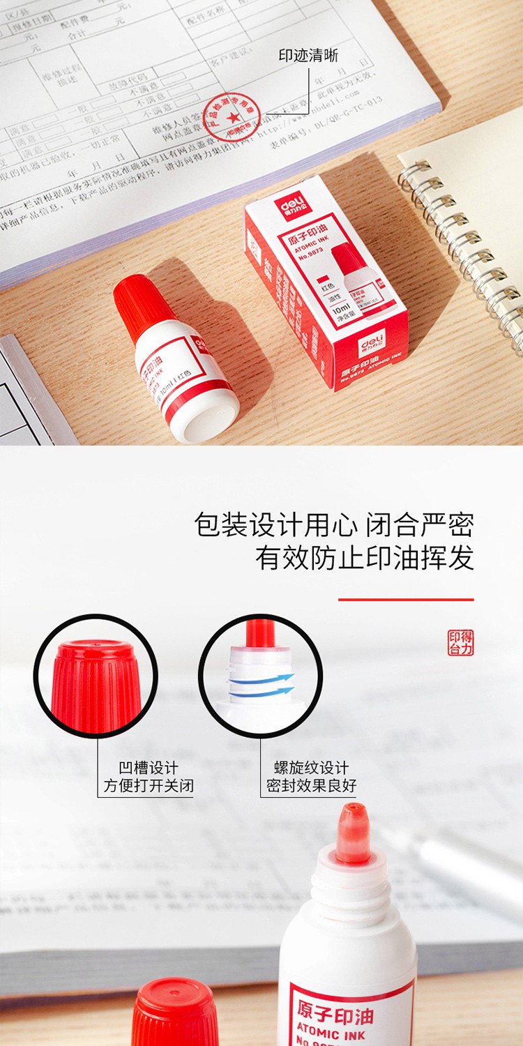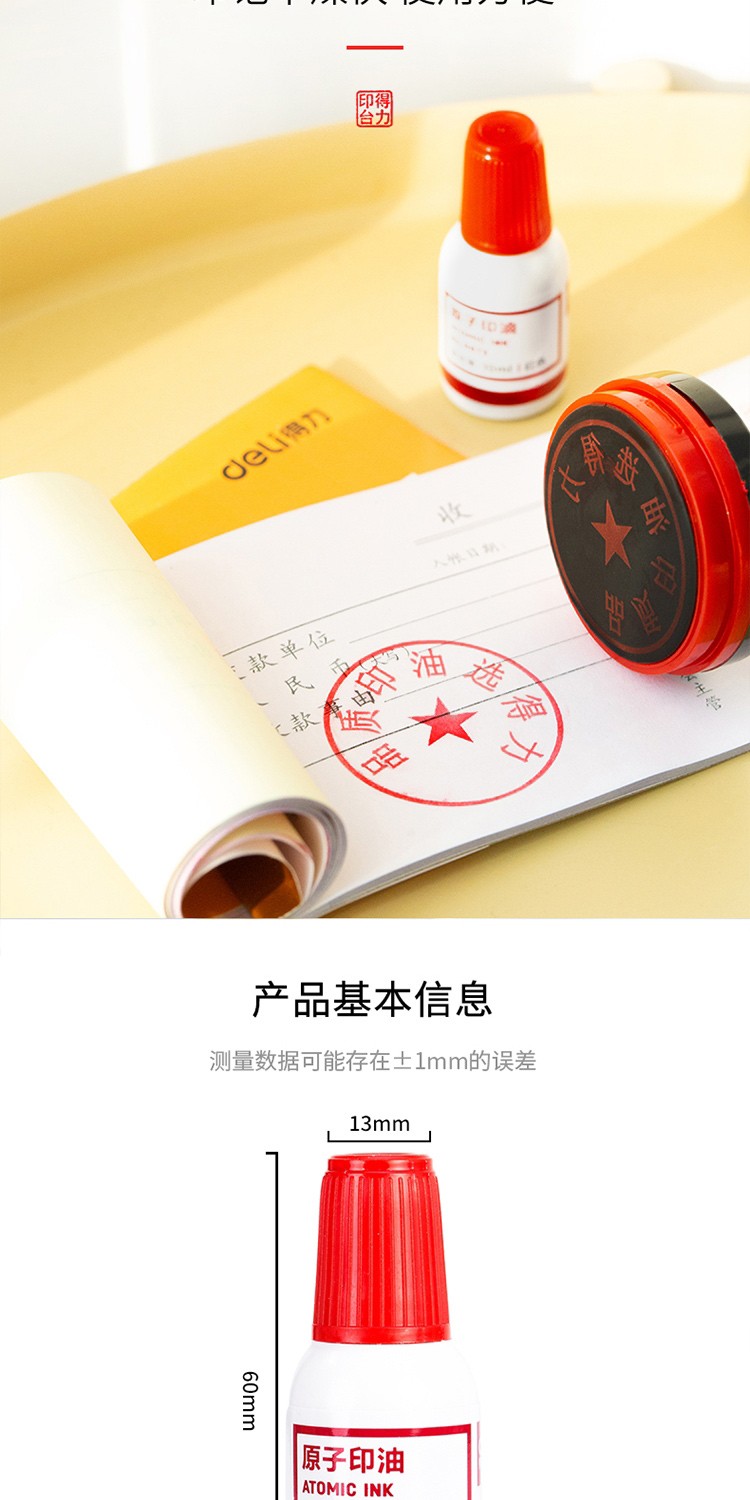 得力(deli) 9873 原子快干印油 印泥 10ml(紅色)