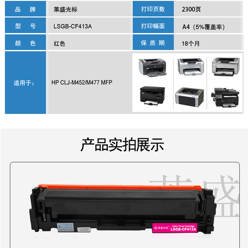 萊盛(laser) LSGB-CF413A 打印機硒鼓(紅色)