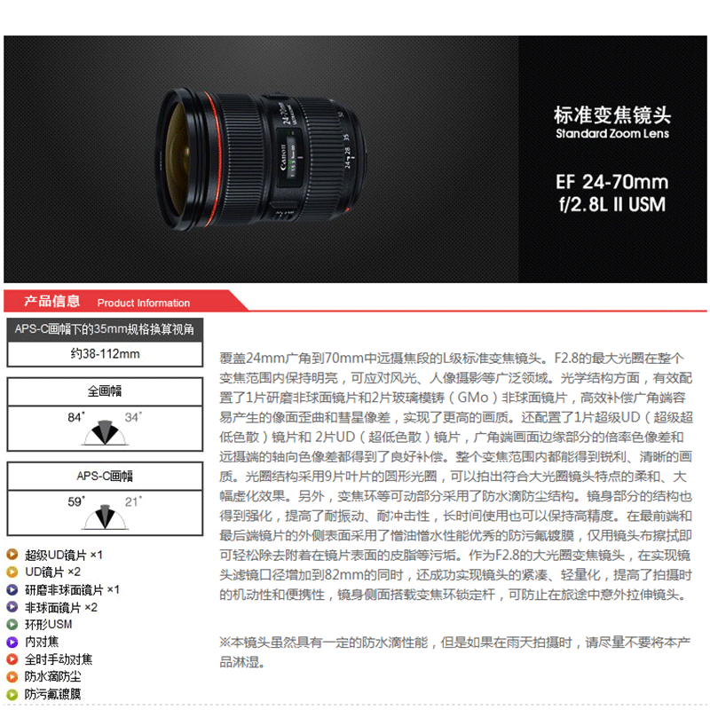 佳能(Canon) EF 24-70mm f/2.8L II USM 標準變焦鏡頭