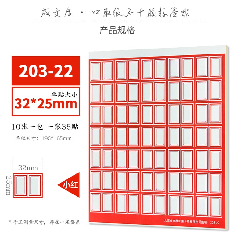 成文厚 口取紙 不干膠標(biāo)簽紙 口曲紙 10張/包(203-1A1 紅色)