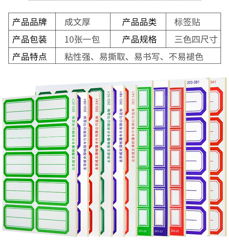 成文厚 口取紙 不干膠標(biāo)簽紙 口曲紙 10張/包(203-1B1 藍(lán)色)