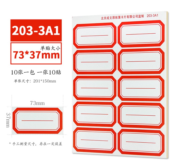 成文厚 口取紙 不干膠標(biāo)簽紙 口曲紙 10張/包(203-22 紅色)