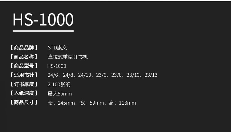 旗文(STD) HS-1000 按鍵式訂書機(jī) 加厚重型訂書器 可訂100頁