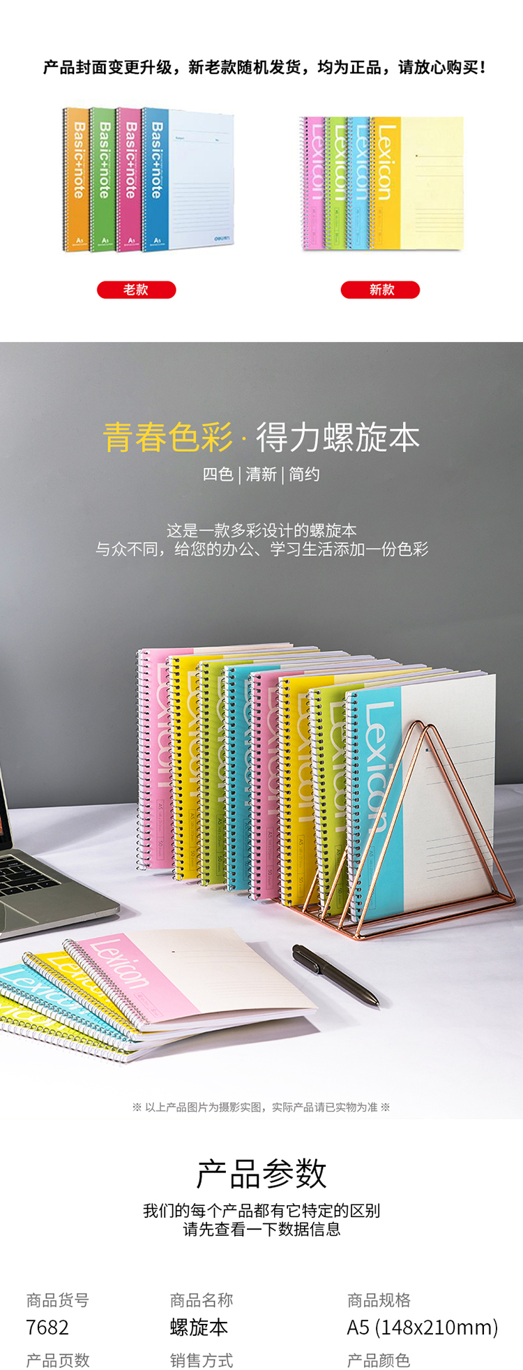 得力(deli) 7693 螺旋裝訂本 記事本 B5/60頁 6本裝