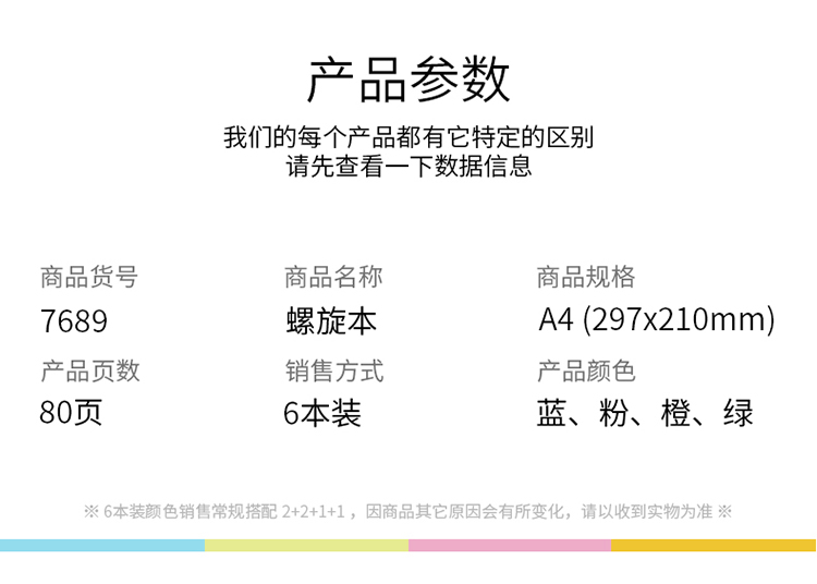 得力(deli) 螺旋裝訂本 記事本(7689 A4/80頁 6本/包)