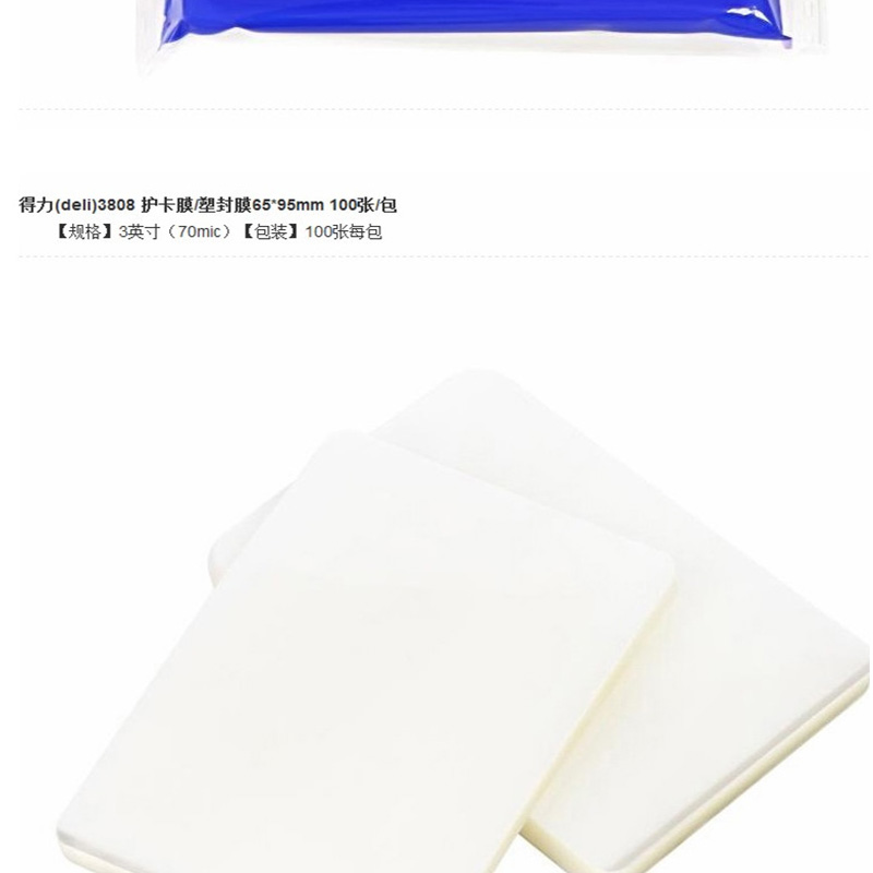 得力(deli) 3808 相片塑封/護(hù)卡膜/塑封膜 100張/包 白色