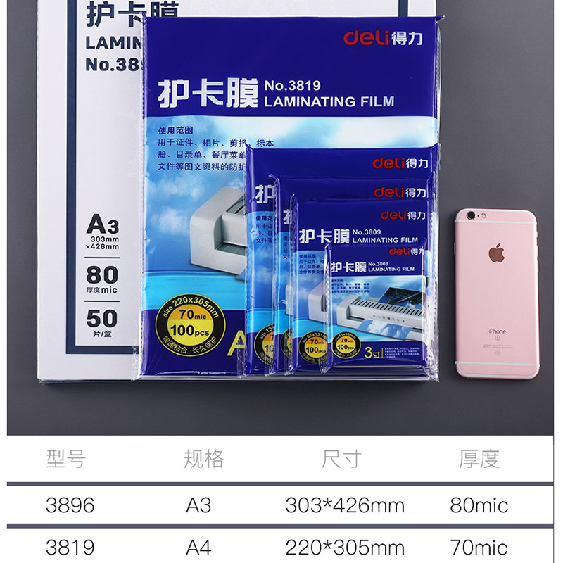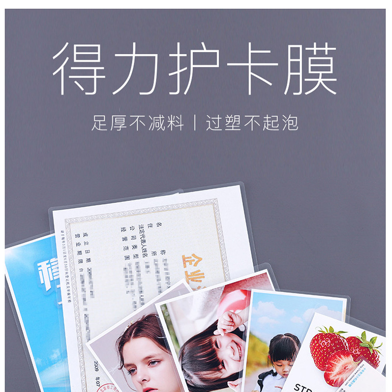得力(deli) 3809 塑封膜/過塑膜/護(hù)卡膜 100張 防水 防卷曲 透明