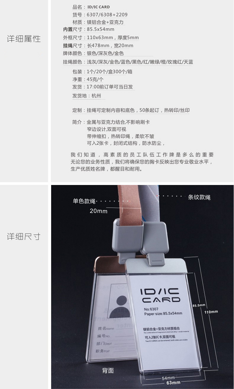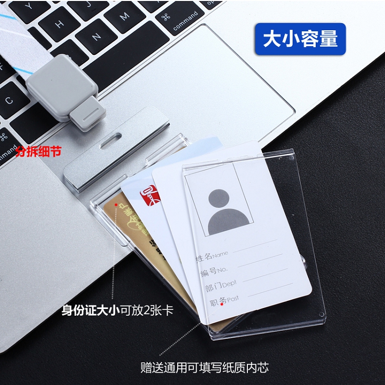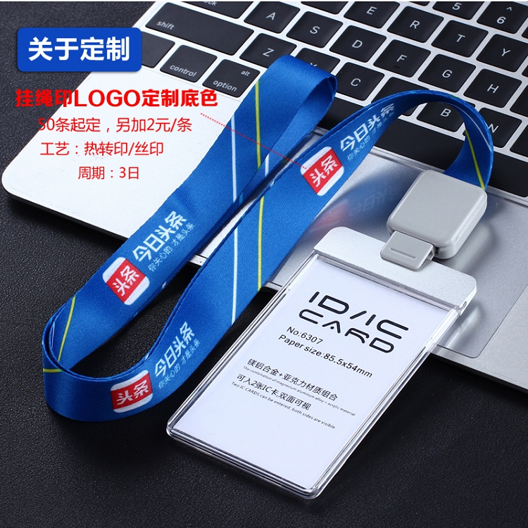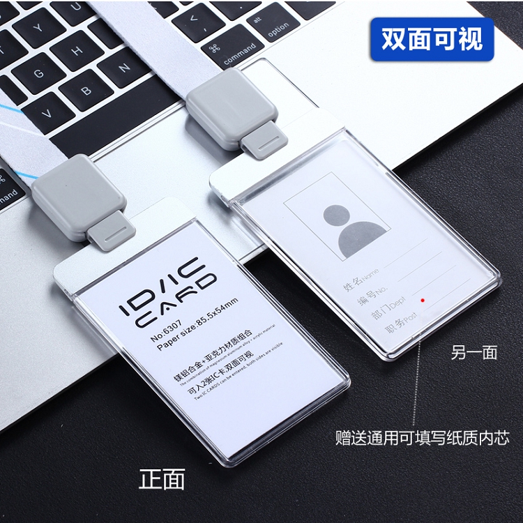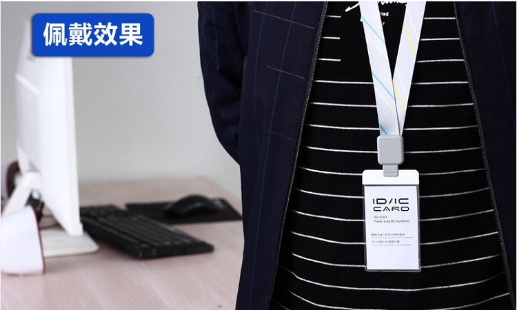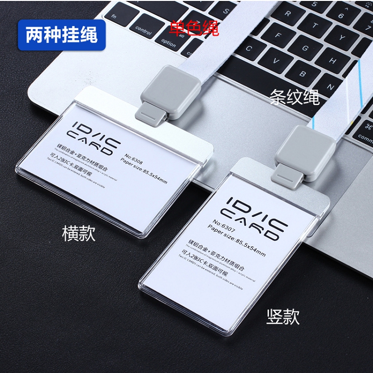 德致 證件卡套 門禁卡吊繩易拉扣繩定做 豎 深灰牌+灰單色繩