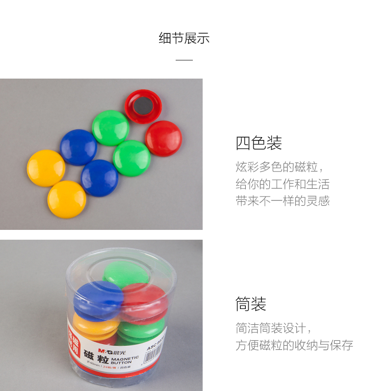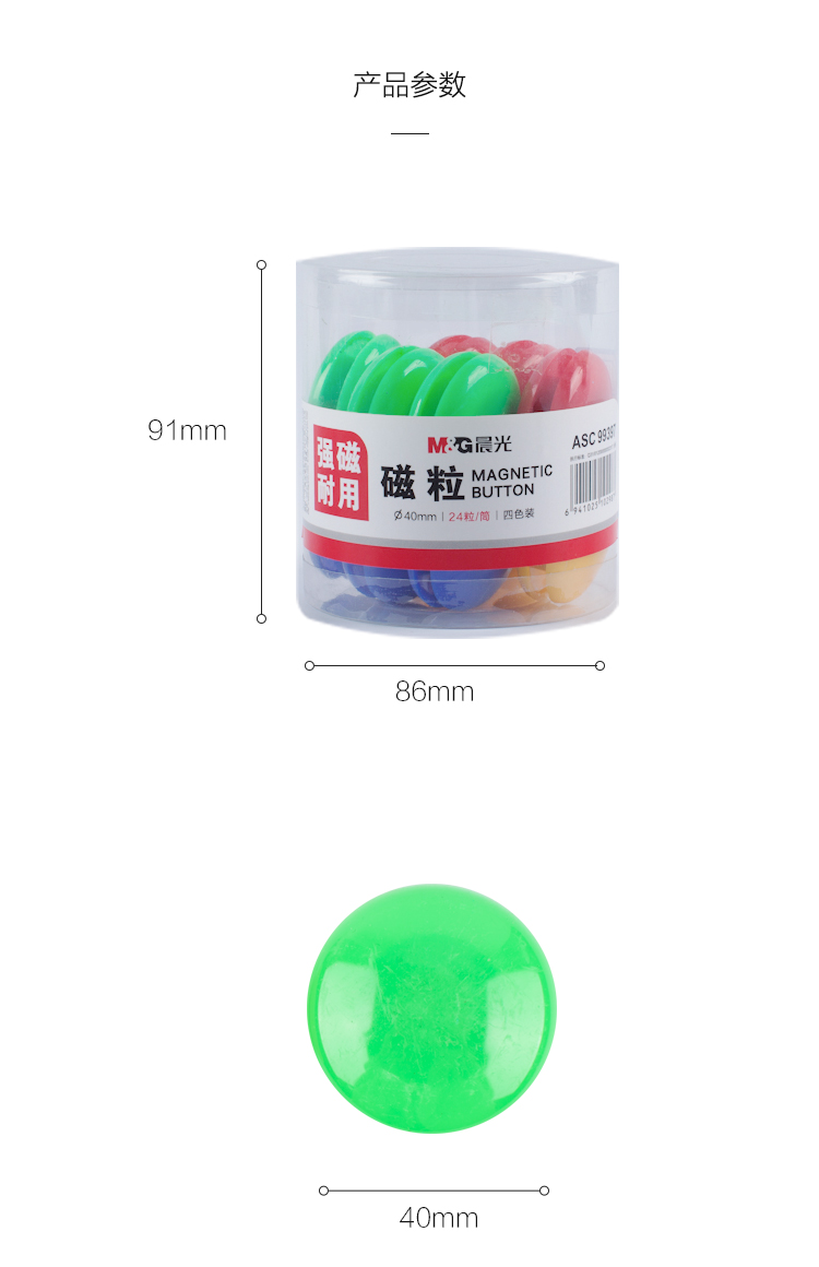 晨光(M&G) ASC99397 24粒裝Φ40mm強(qiáng)磁粒白板專用磁扣磁釘磁貼吸鐵石