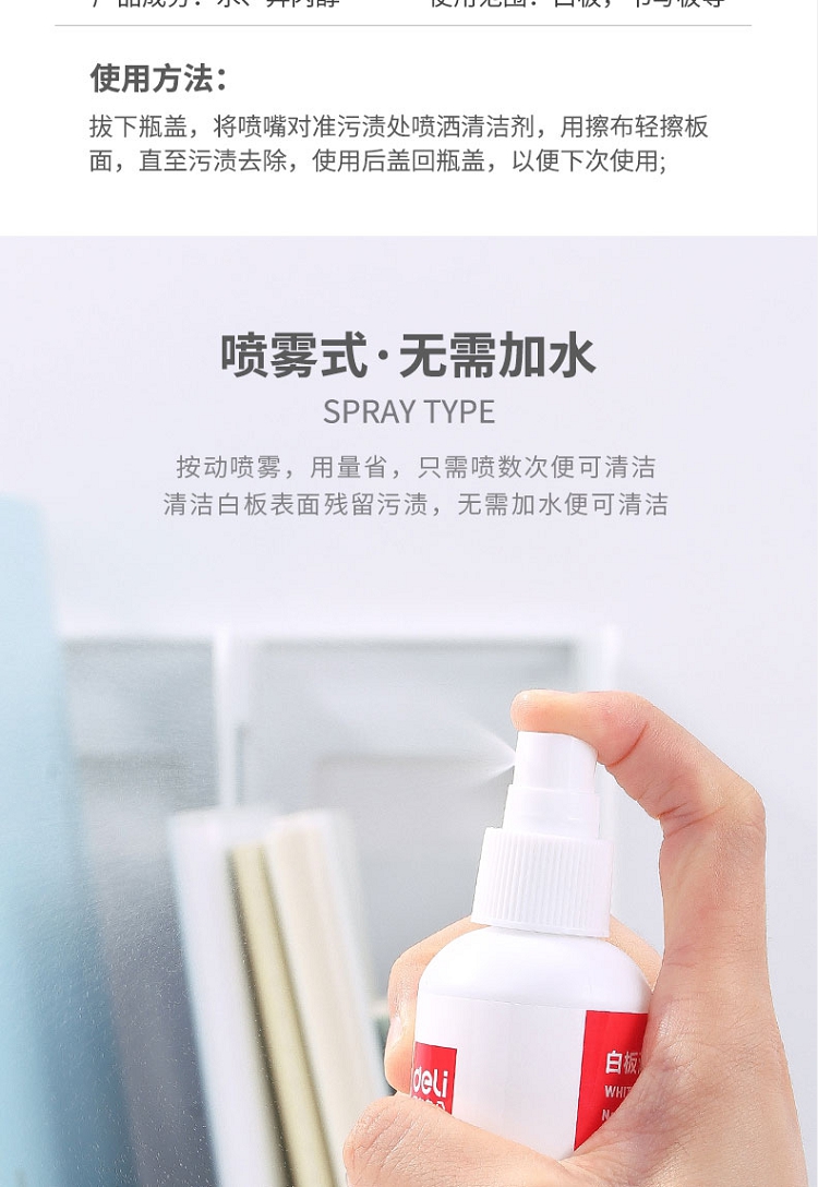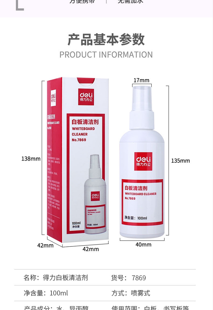 得力(deli) 7859 白板、黑板、綠板清潔劑附贈(zèng)白板清潔巾