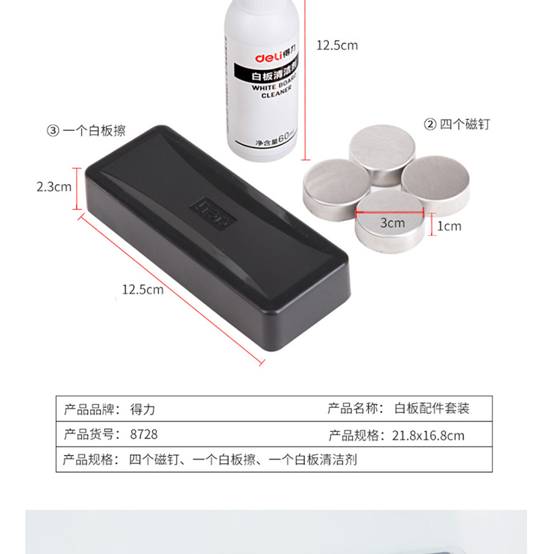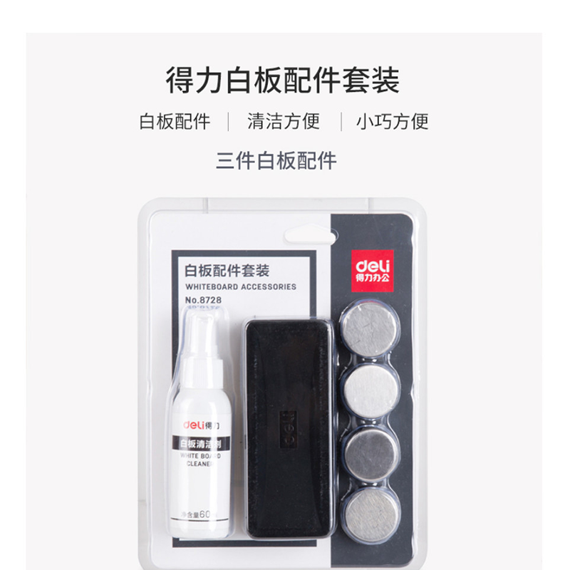 得力(deli) 8728 白板擦寫(xiě)組合 清洗劑+板擦+磁扣