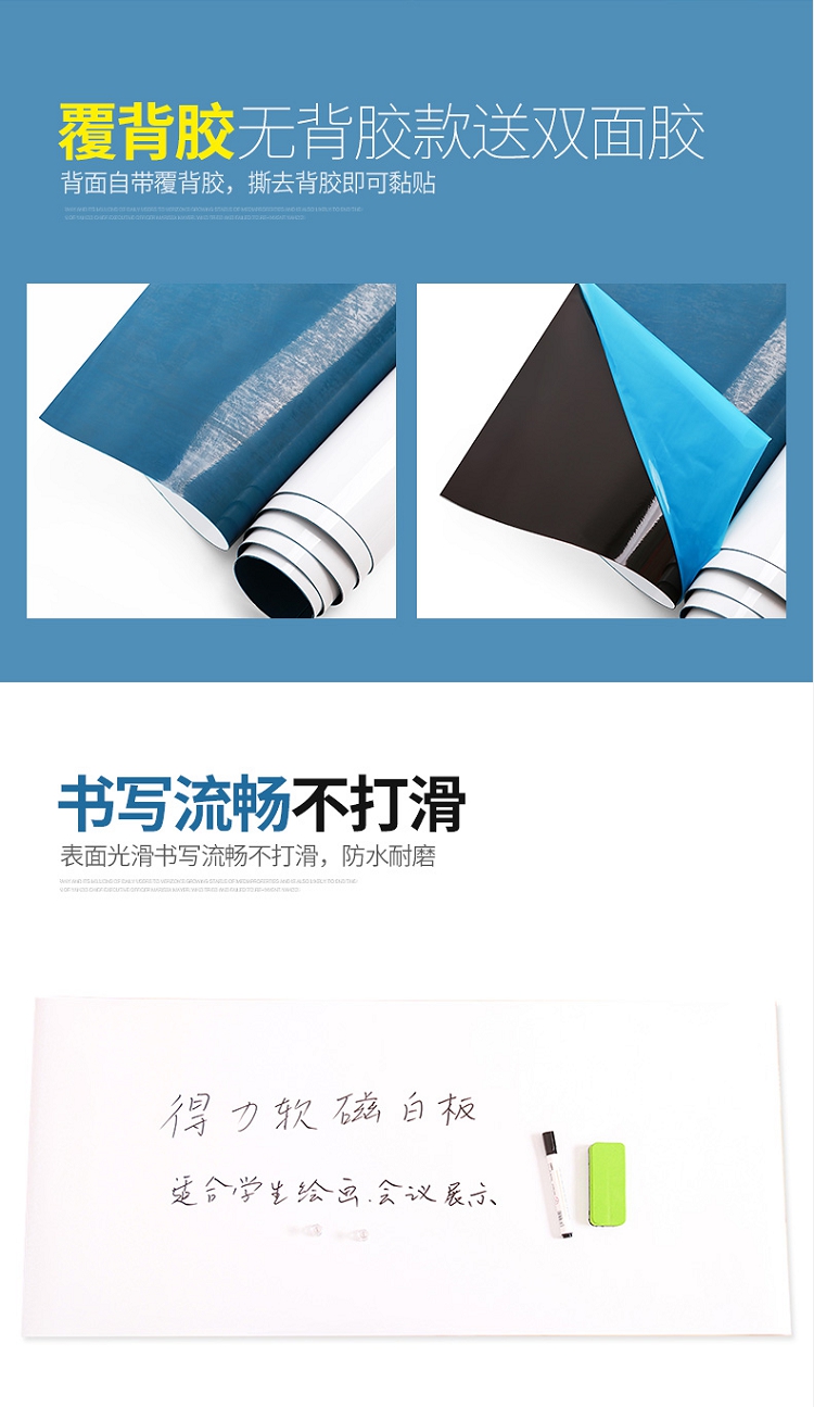 得力(deli) 8710 磁性軟白板墻貼掛式辦公家用軟鐵白板0.6*450*1000mm(無膠)