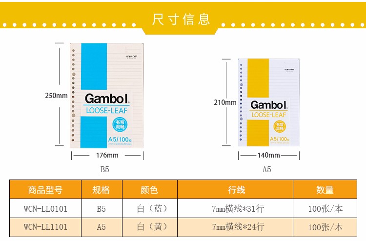 國譽(KOKUYO) WCN-LL0101 渡邊替換活頁本芯/活頁紙?zhí)鎿Q芯