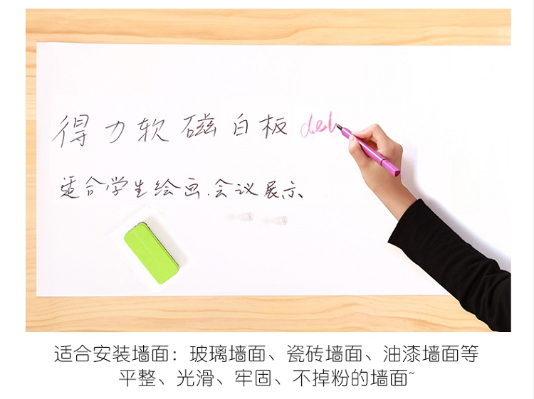 得力(deli) 8718 磁性軟白板墻貼掛式辦公家用軟鐵白板0.5*900*2000mm(帶膠)