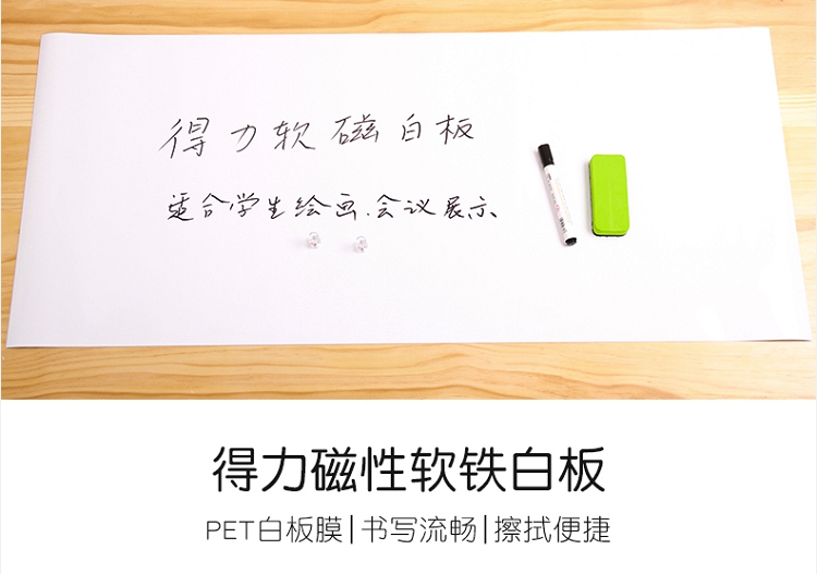 得力(deli) 8719 磁性軟白板墻貼掛式辦公家用軟鐵白板0.6*600*900mm(無膠)
