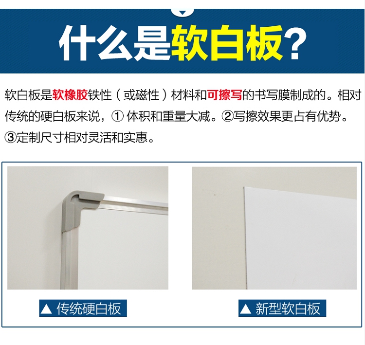 得力(deli) 8710 磁性軟白板墻貼掛式辦公家用軟鐵白板0.6*450*1000mm(無(wú)膠)