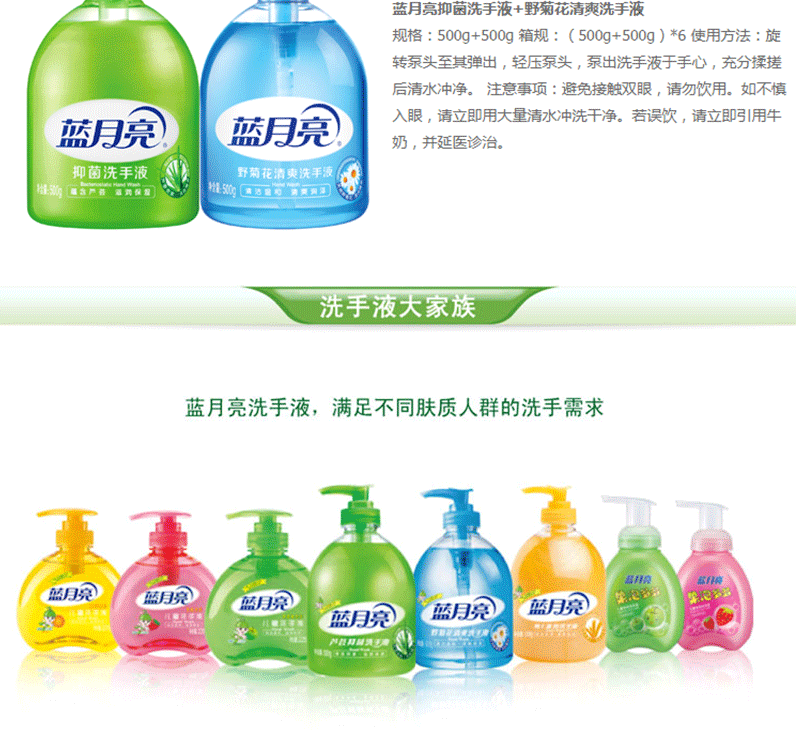 藍月亮蘆薈洗手液500g+野菊花洗手液500g