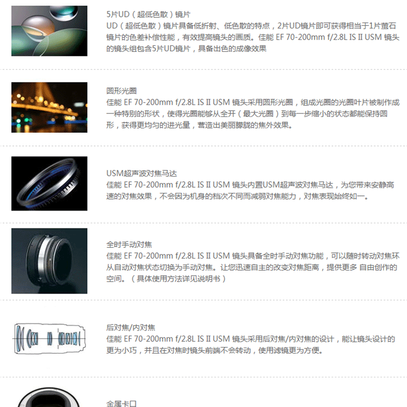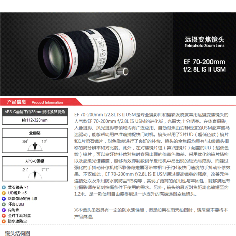 佳能(Canon) EF 70-200mm f/2.8L USM 遠(yuǎn)攝變焦鏡頭