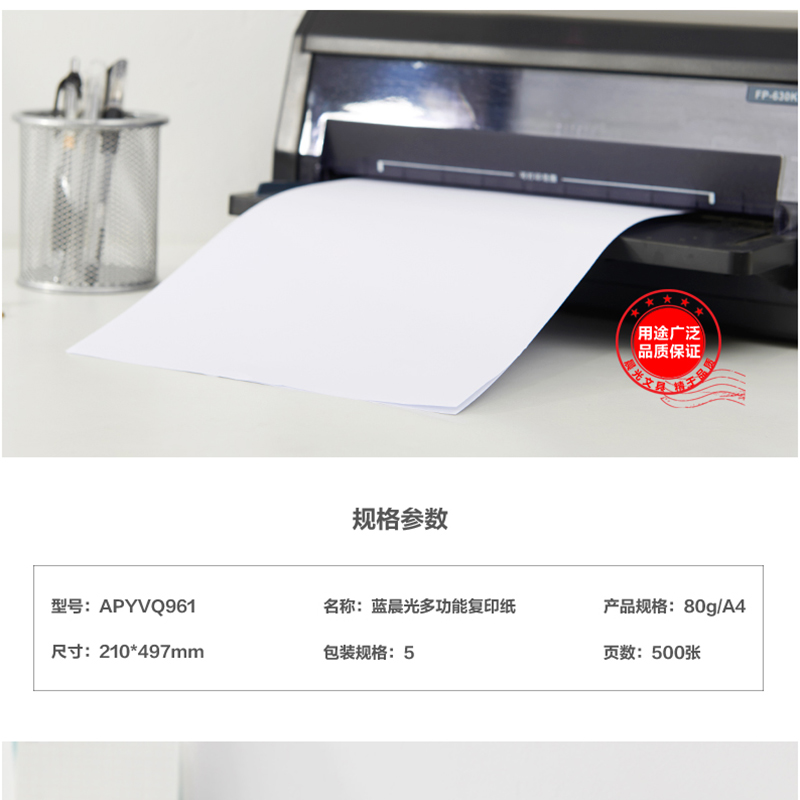 晨光(M&G) APYVQ961 藍(lán)包多功能復(fù)印紙 A4/80g 5包/箱