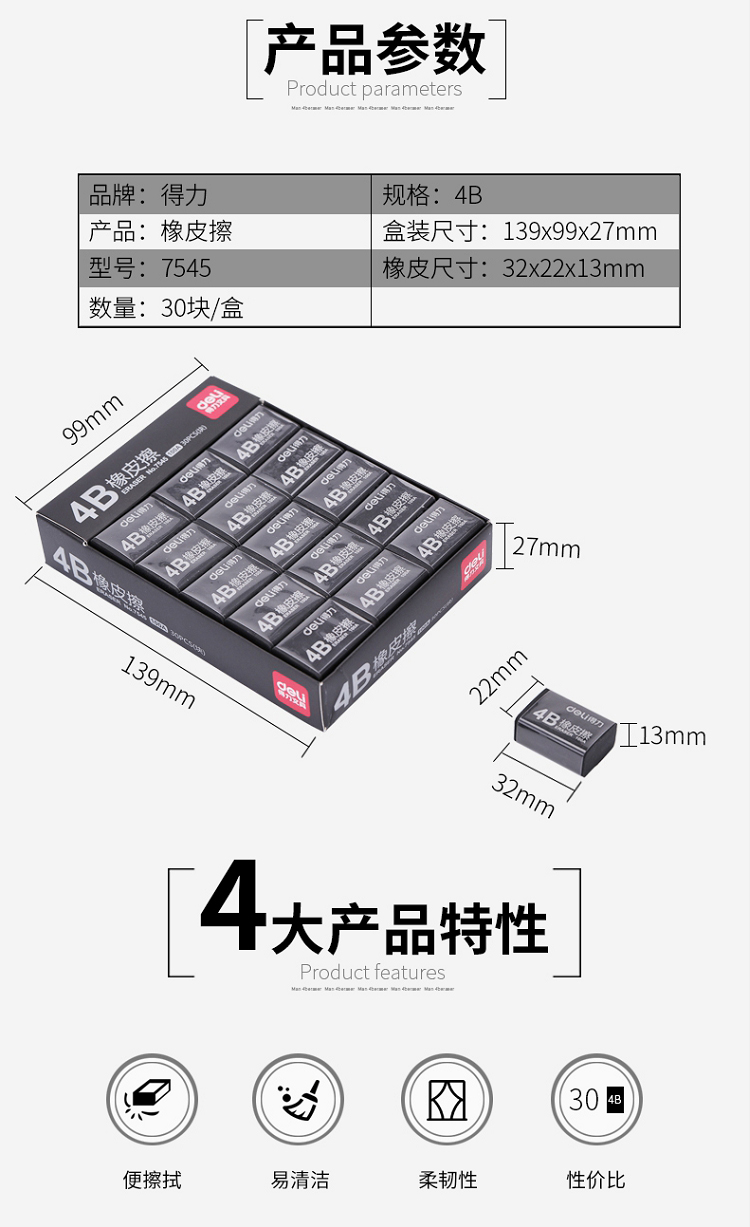 普樂士 磨砂橡皮擦學(xué)生文具 ER-550SE 全砂款 10個