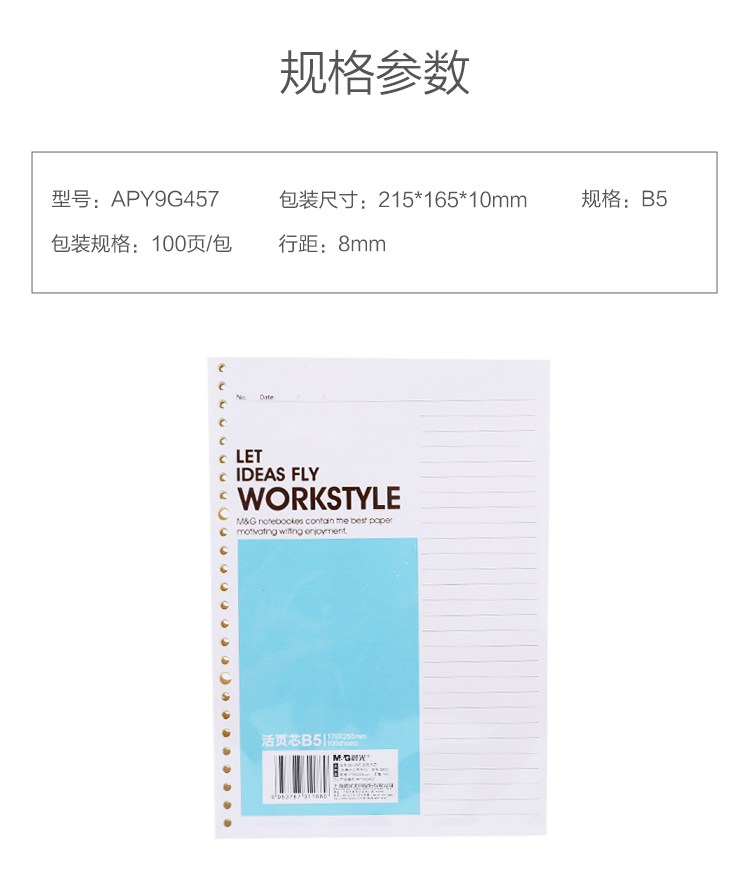 晨光(M&G)B5/100頁活頁本替芯26孔APY9G457