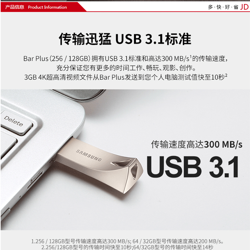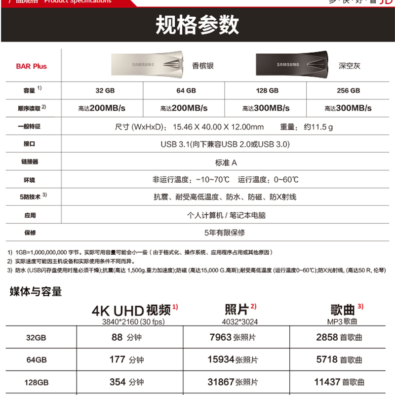 三星(SAMSUNG)128GB USB3.1 U盤(pán) BAR升級(jí)版