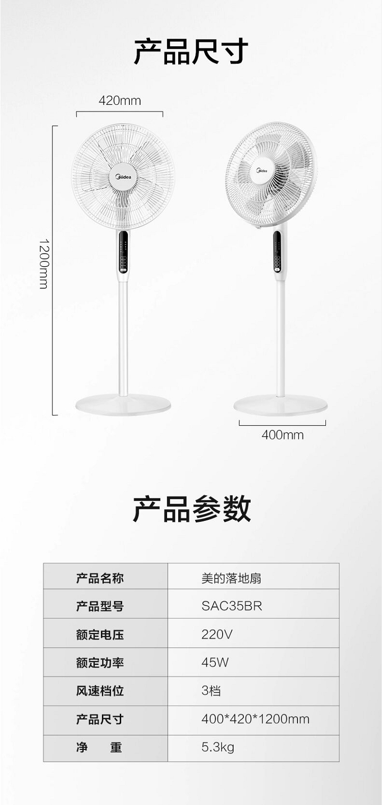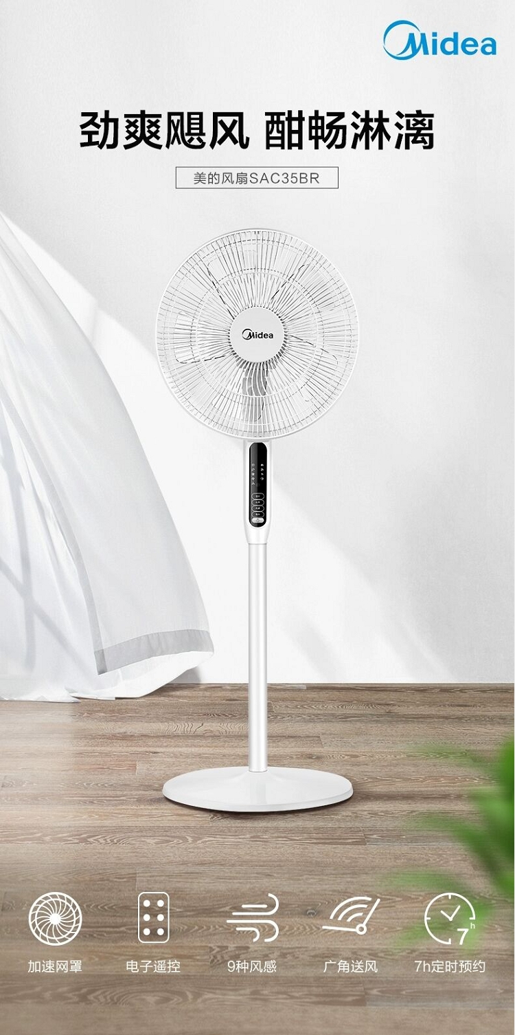 美的(Midea)SAC35BR 新品家用遙控電風扇