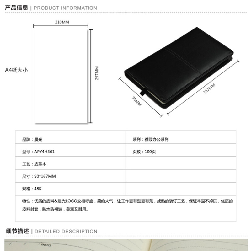 晨光(M&G) APY4H361 皮面日記本 記事本 48K/100頁 顏色隨機(jī)