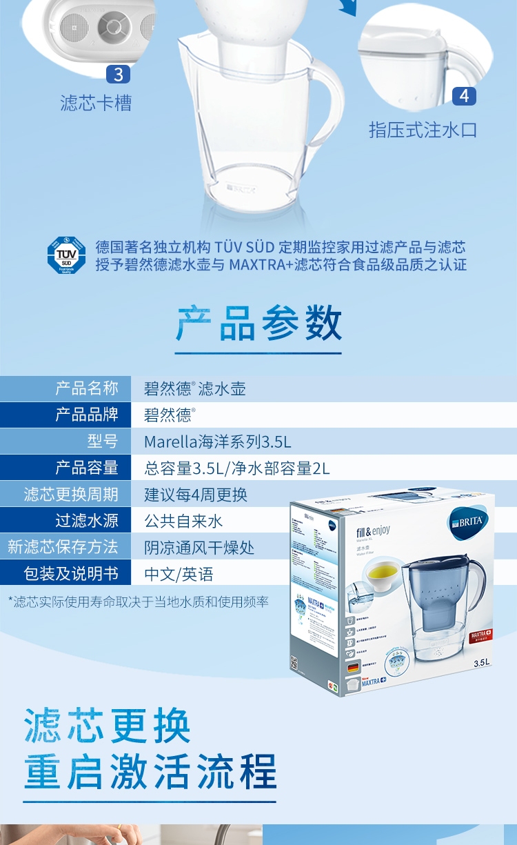 碧然德(BRITA)濾水壺 Marella藍色3.5L單個裝