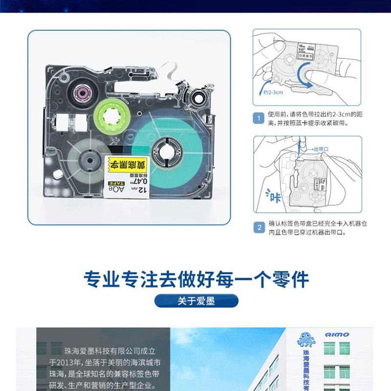 愛墨 AQe-221(9mm)不干膠標簽紙色帶 透明底黑字