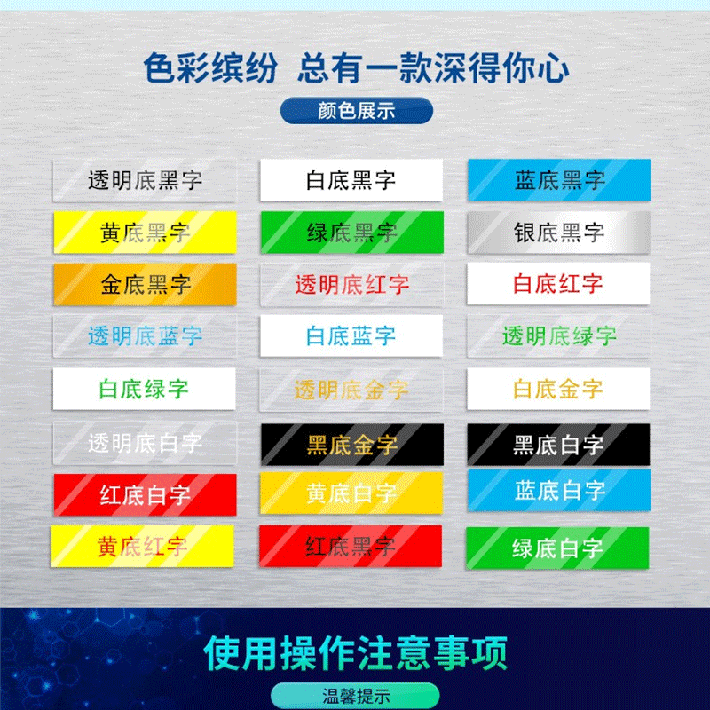防水、防油、耐刮、耐磨、防腐蝕、易剝離、不易褪色、耐高低溫、;適用機(jī)型:兄弟標(biāo)簽機(jī)