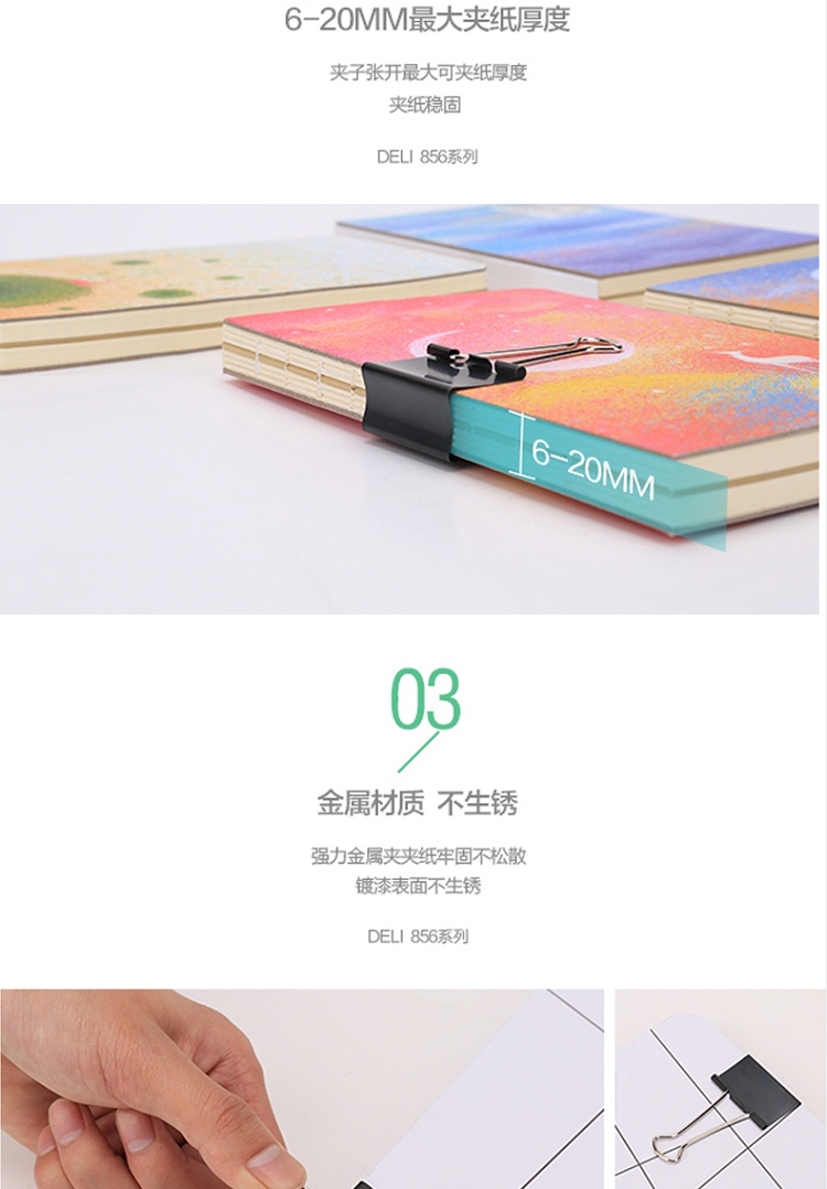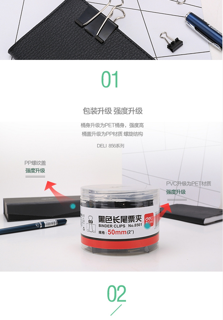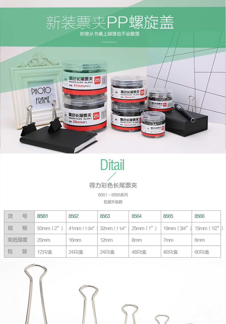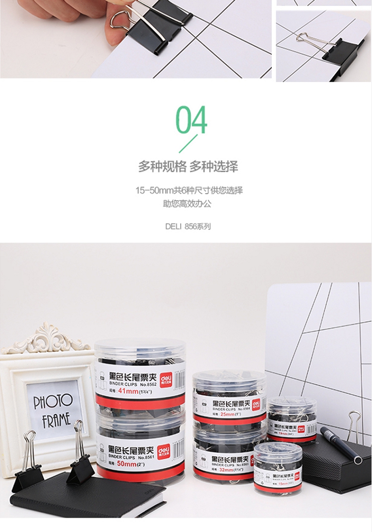 得力(deli) 8565 5#長尾夾/長尾票夾 19mm 40只/筒 黑色