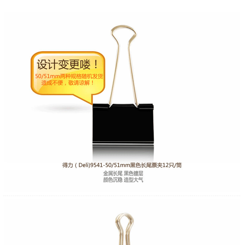 得力(deli) 9541 1#長尾夾/長尾票夾50/51mm 12只/盒 黑色