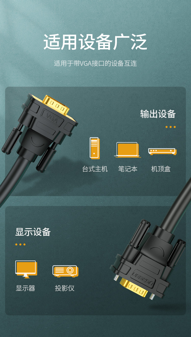 綠聯(lián)(UGREEN)工程級(jí)VGA線 延長線 vga3+6銅芯11630(5米)