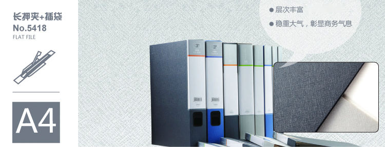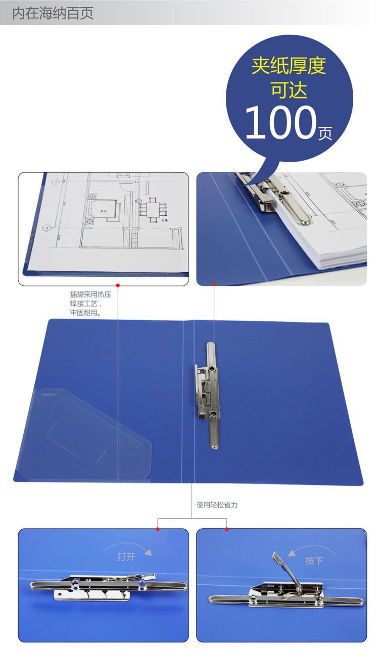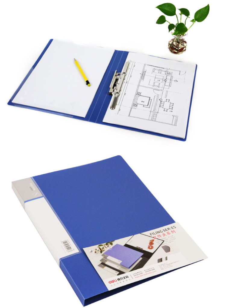 得力(deli) A4長(zhǎng)押夾+插袋文件夾藍(lán)色5418