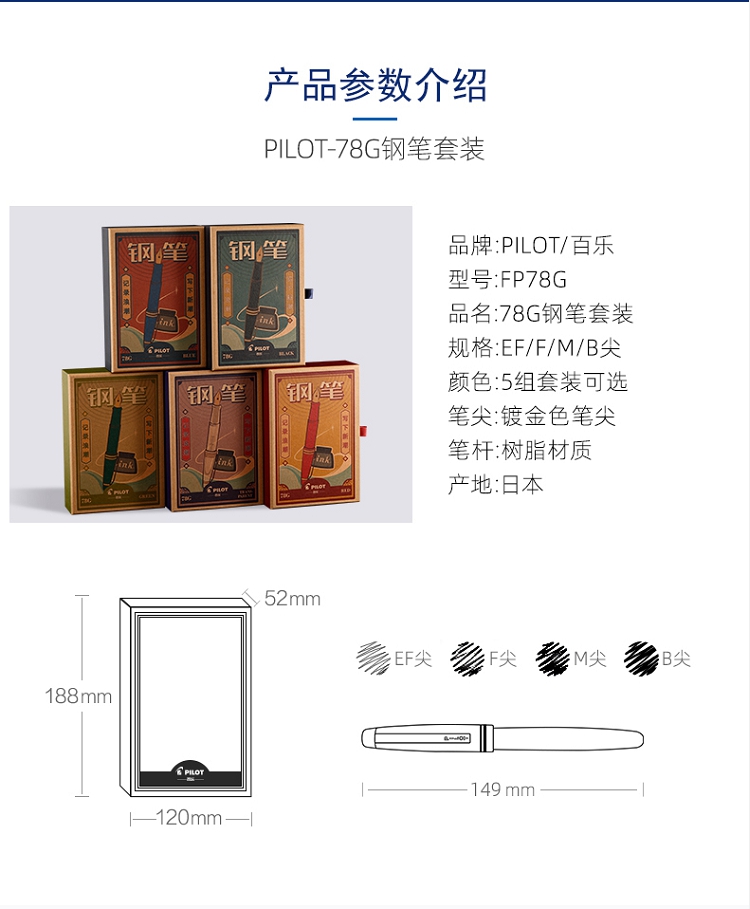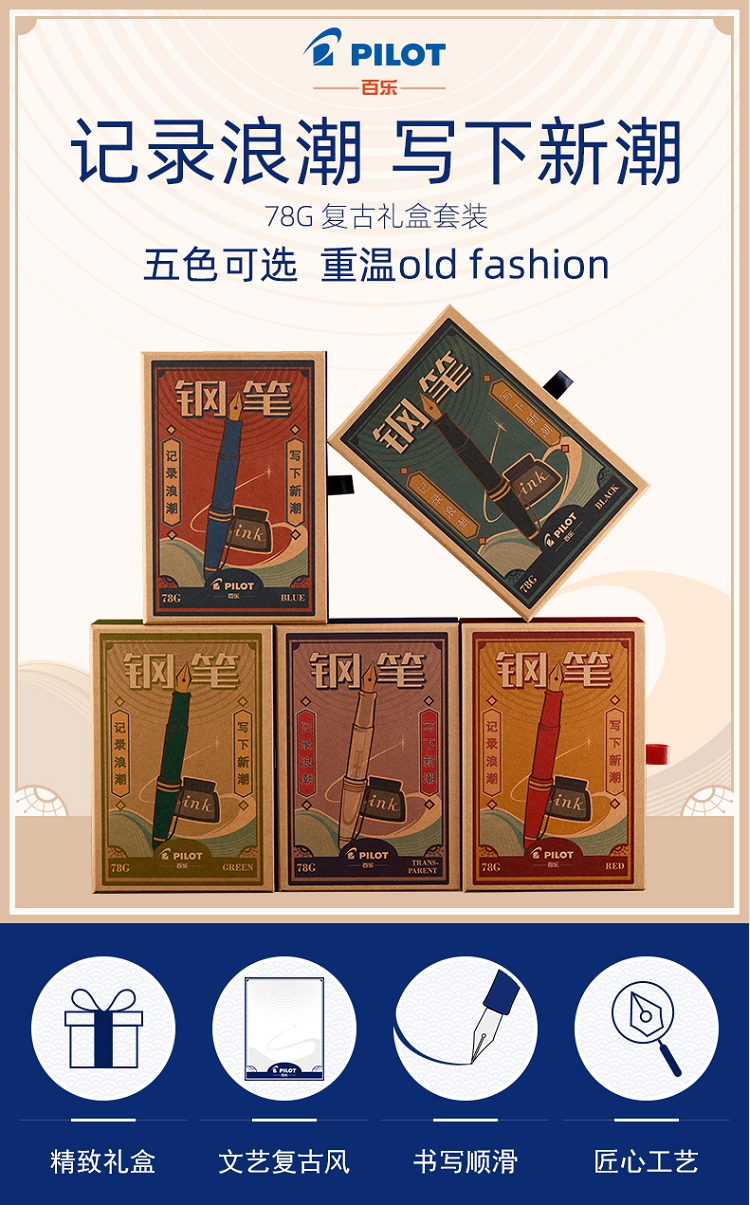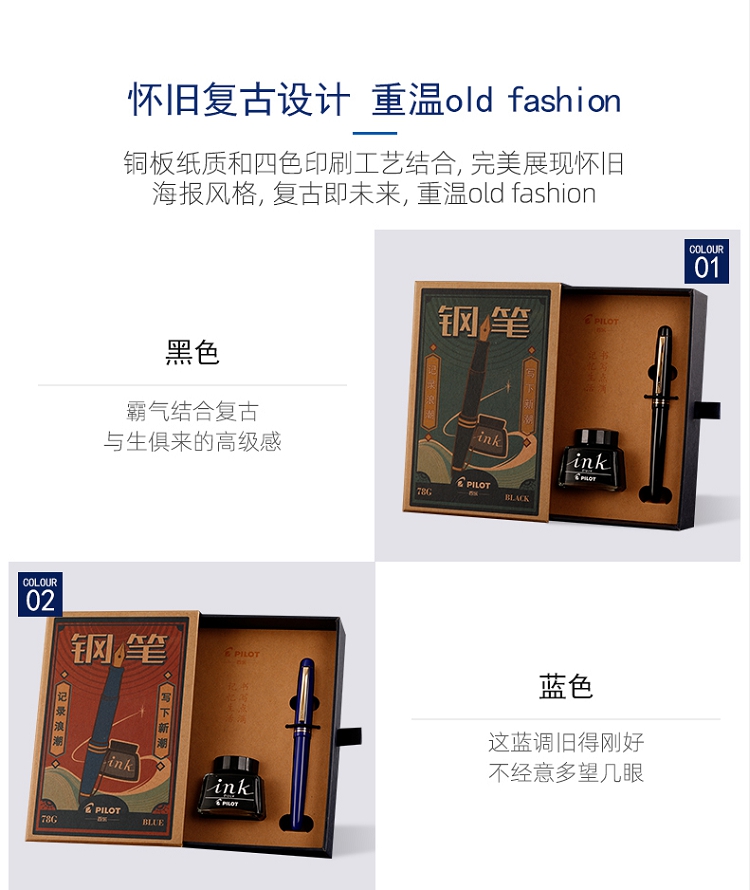 百樂(PILOT)FP-78G+鋼筆套裝 商務(wù)簽字筆練字送禮鋼筆墨水復(fù)古禮盒裝 (F尖黑色)