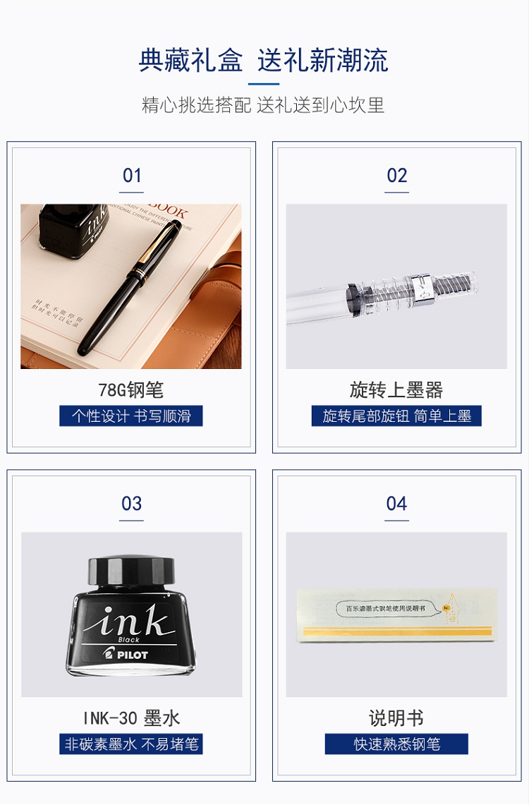 百樂(lè)(PILOT)FP-78G+鋼筆套裝 商務(wù)簽字筆練字送禮鋼筆墨水復(fù)古禮盒裝 (F尖紅色)