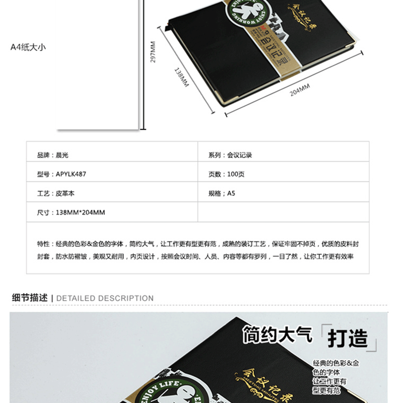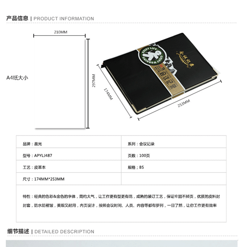 晨光(M&G) APYLK487 會議記錄皮本 A5/100頁 黑色