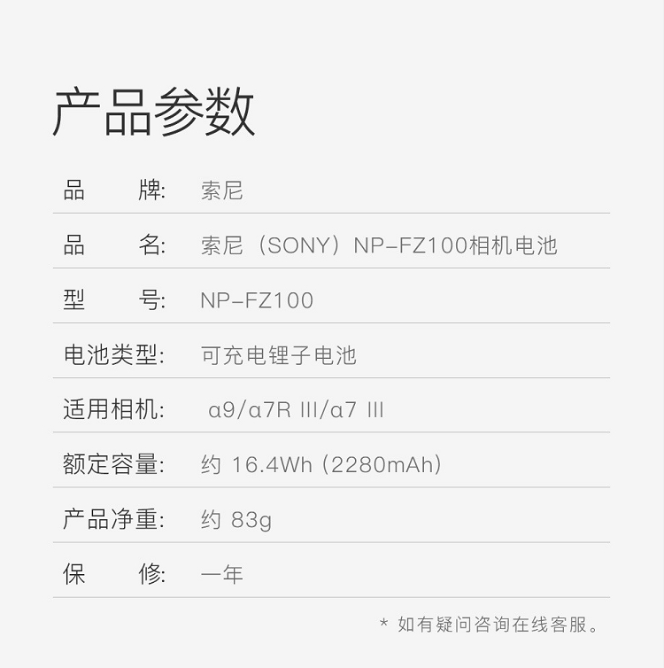 索尼(SONY)NP-FZ100可重復(fù)充電電池