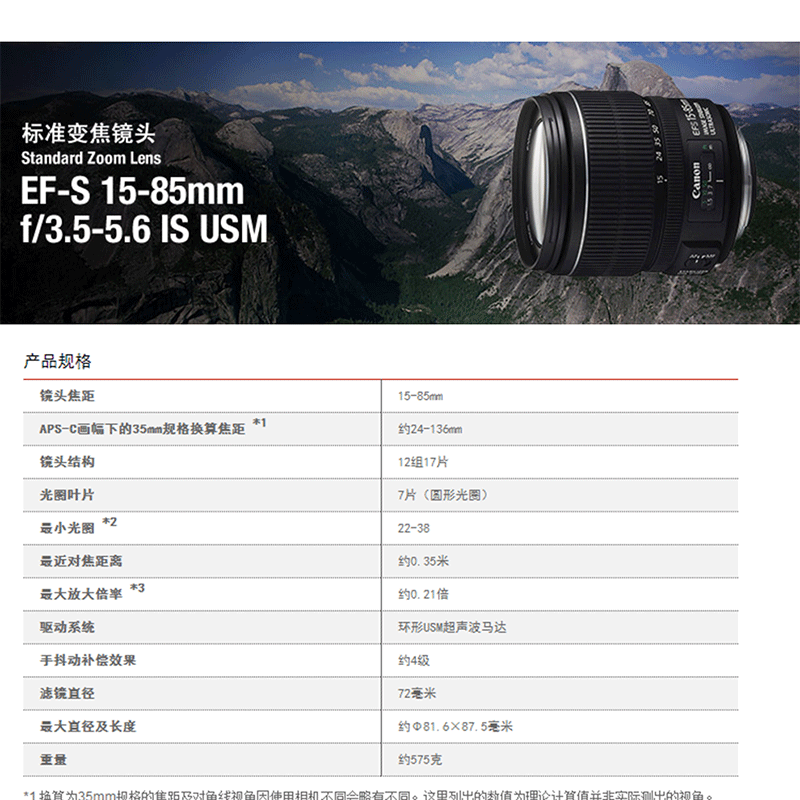 佳能(Canon) EF-S 15-85mm f/3.5-5.6 IS USM 鏡頭(套裝)