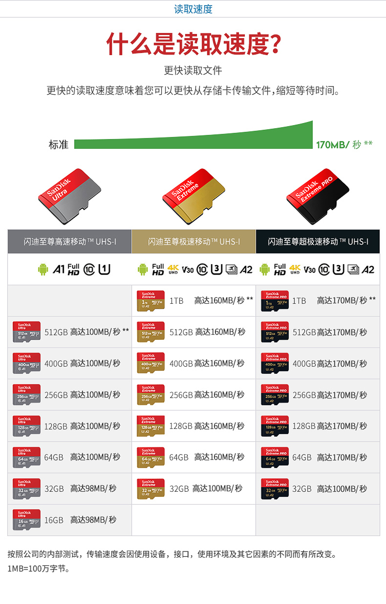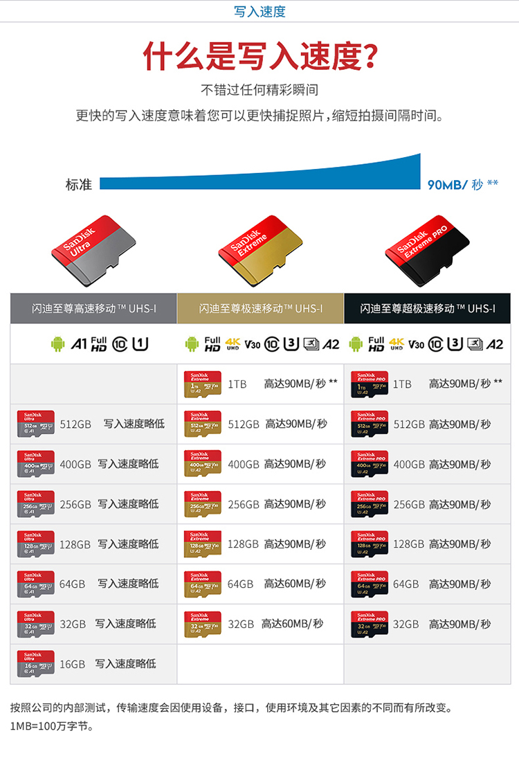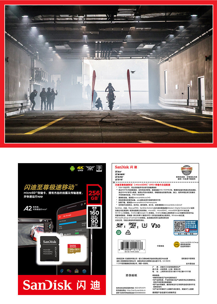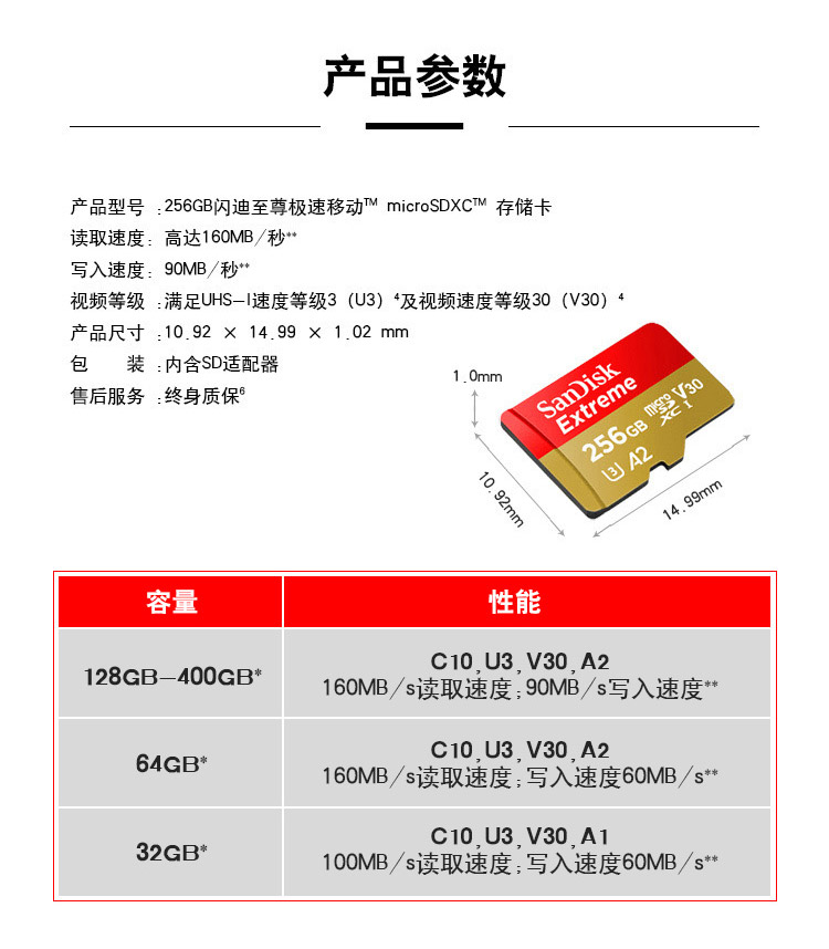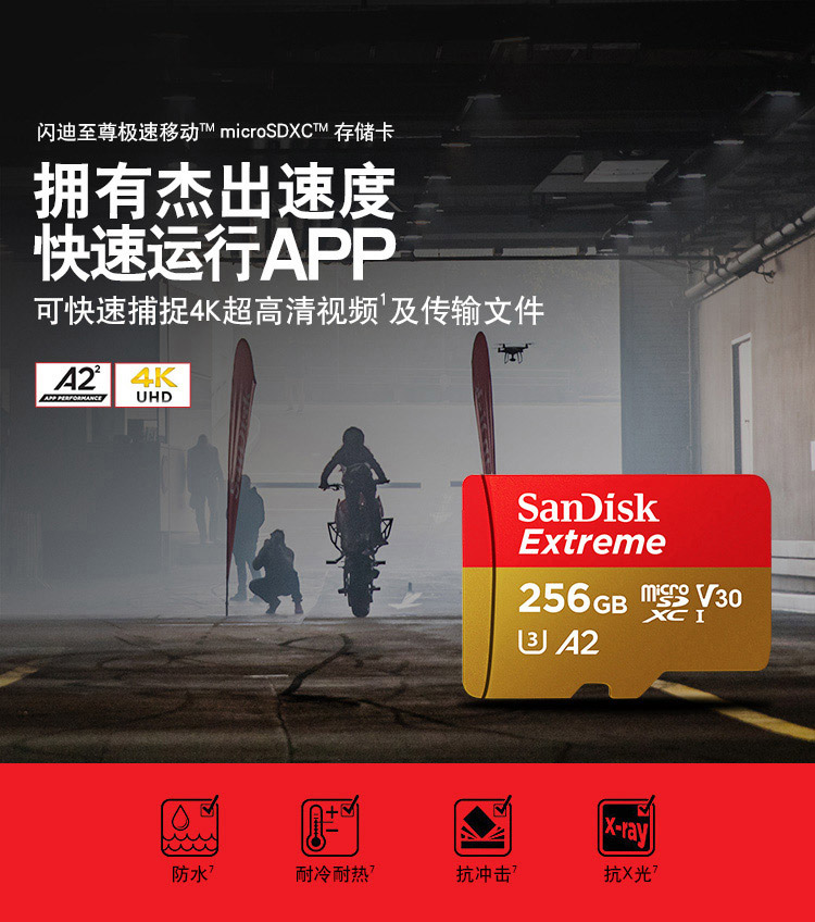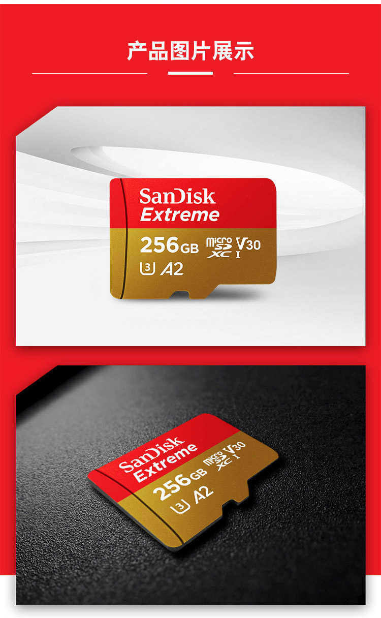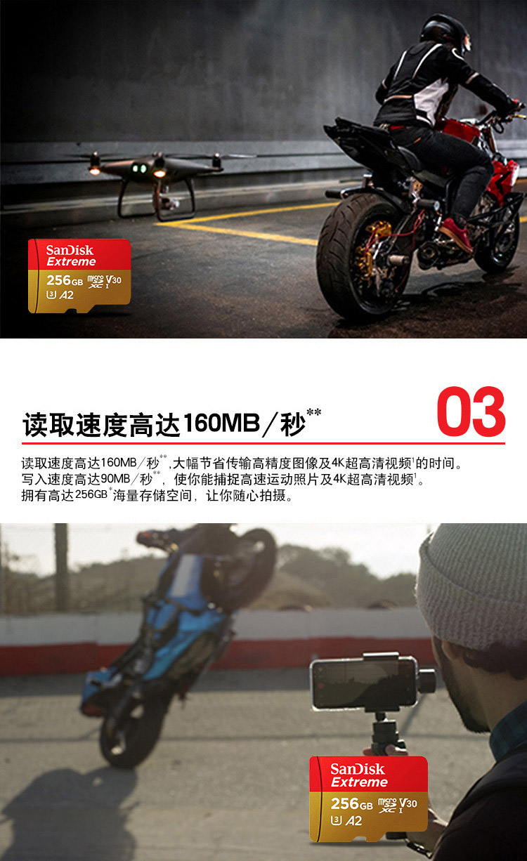 閃迪(SanDisk) 256GB TF存儲卡 讀速160MB/s 寫速90MB/S U3 C10 V30 4K至尊超極速版