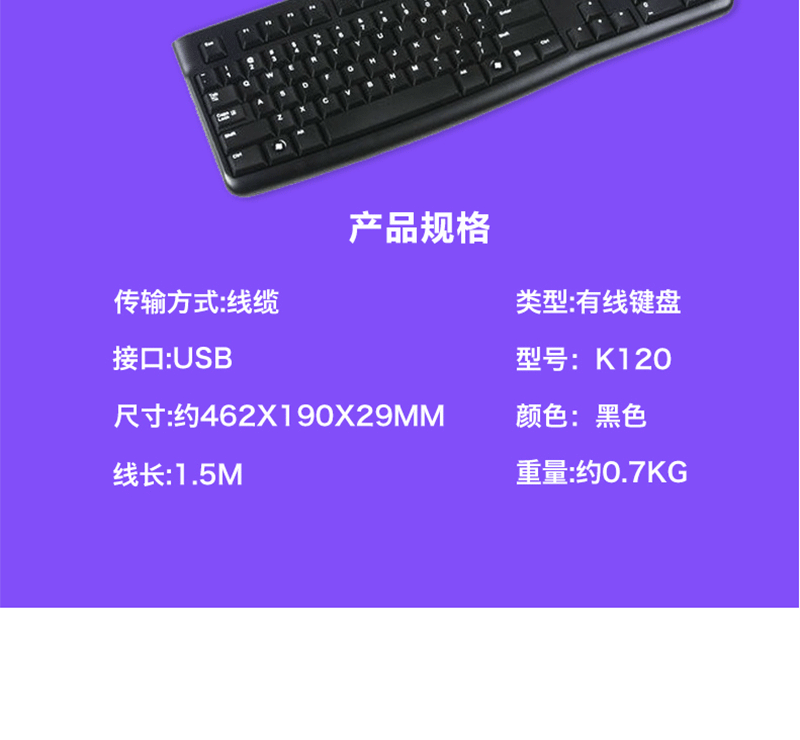 羅技(Logitech) K120 有線鍵盤(黑色) 1.5米線長
