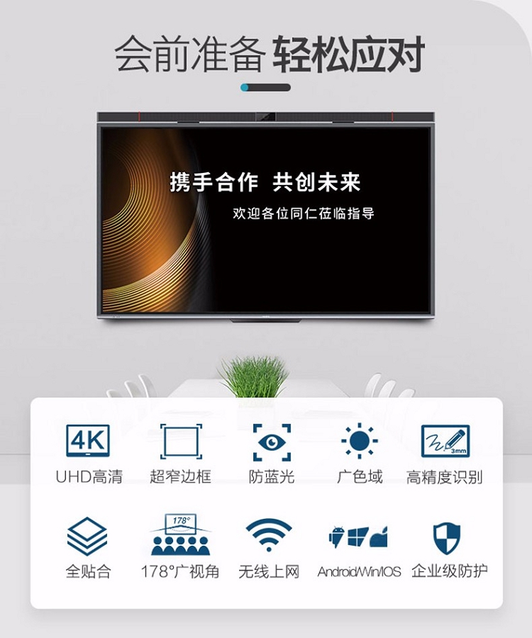鴻合newline會議平板極系列 86英寸4K視頻會議大屏解決方案一體機(jī) TT-8619PTC 86英寸 4K