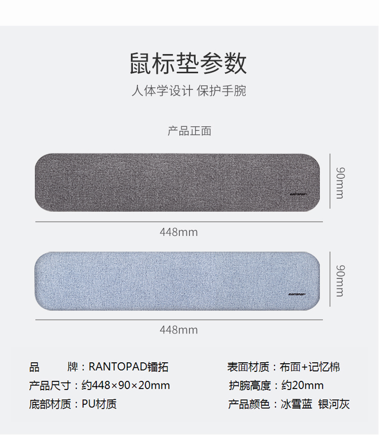 鐳拓( Rantopad )TOTO PRO記憶棉鍵盤托 護(hù)腕托 鎖邊手托(銀河灰)