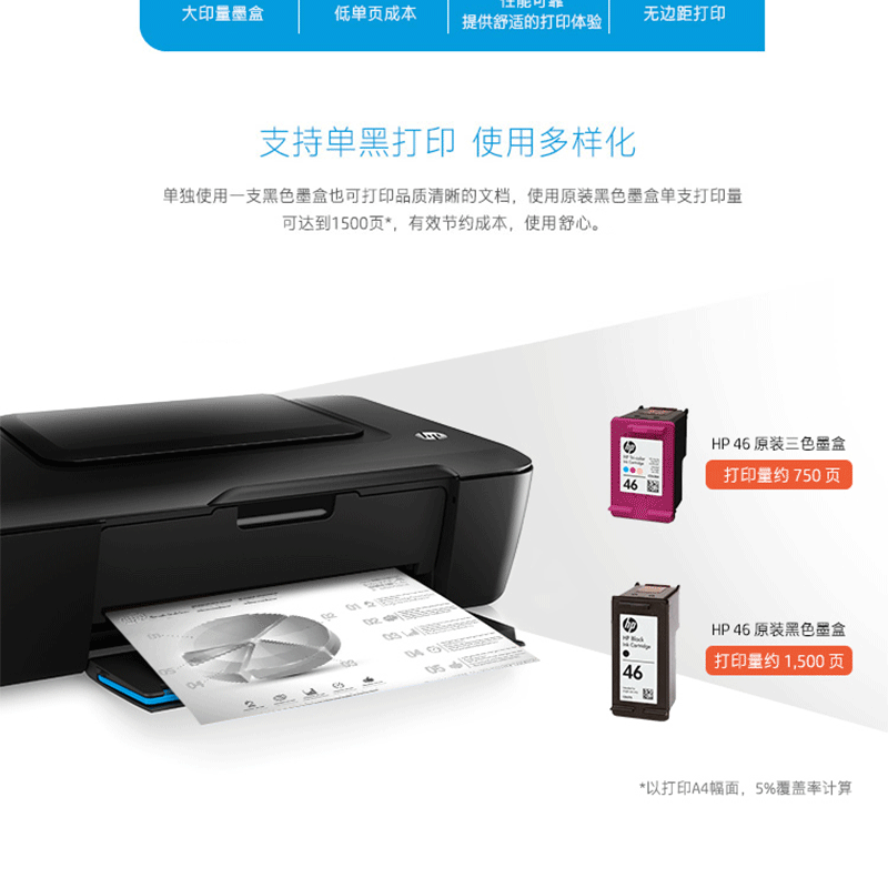 大印量墨盒,單頁打印成本低,無邊距打印,黑白7頁、彩色4頁/分鐘 ?
