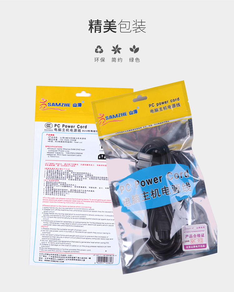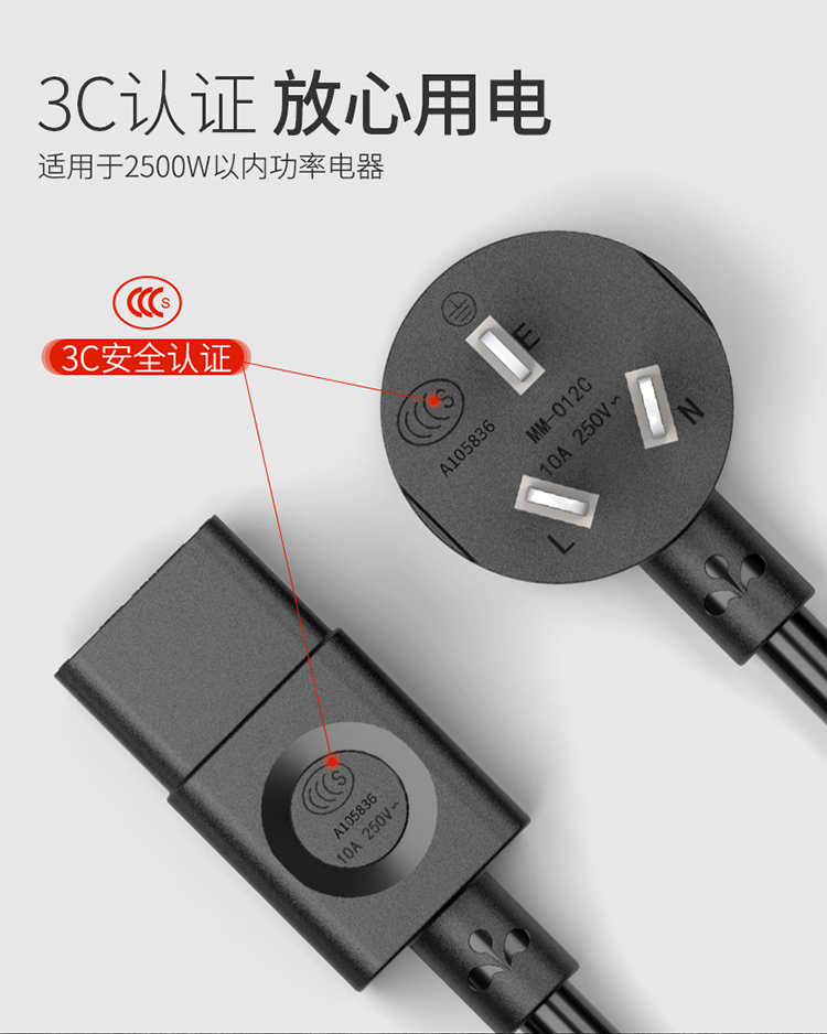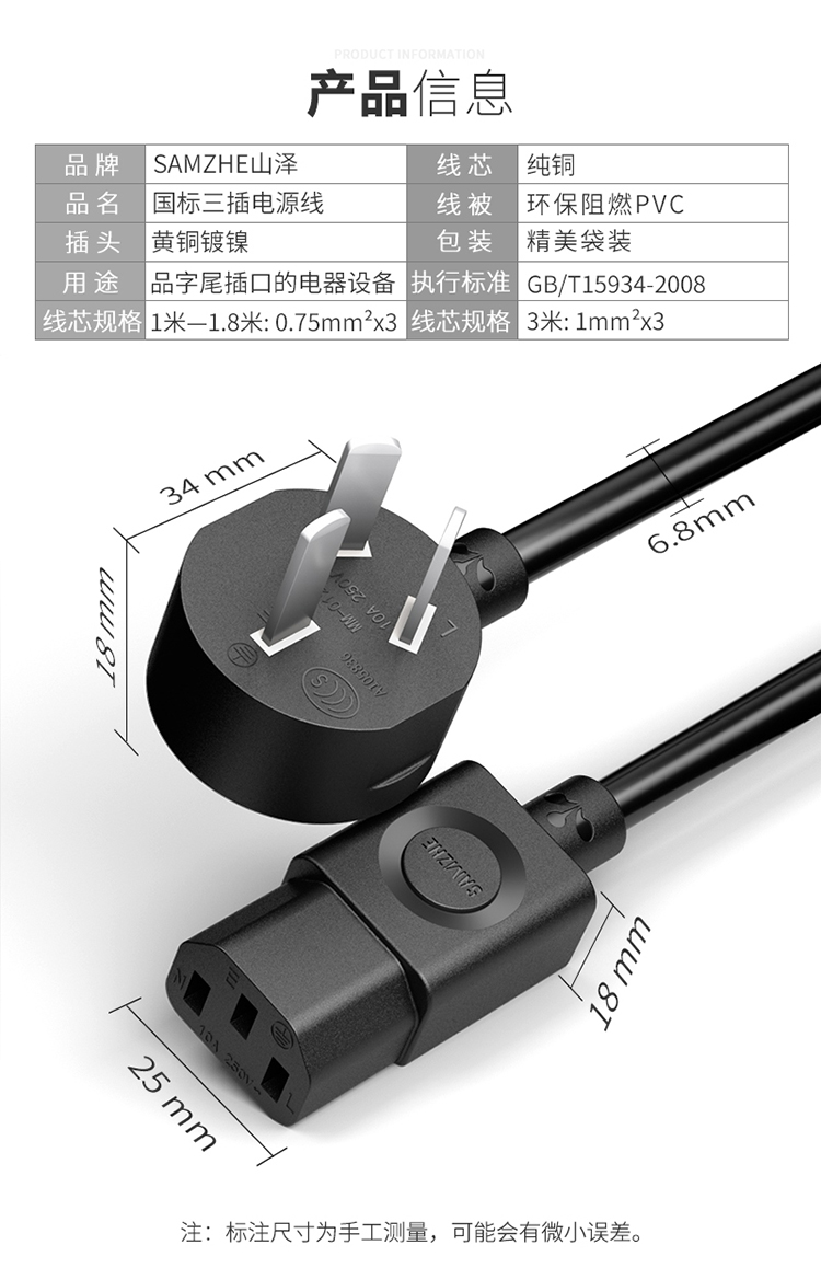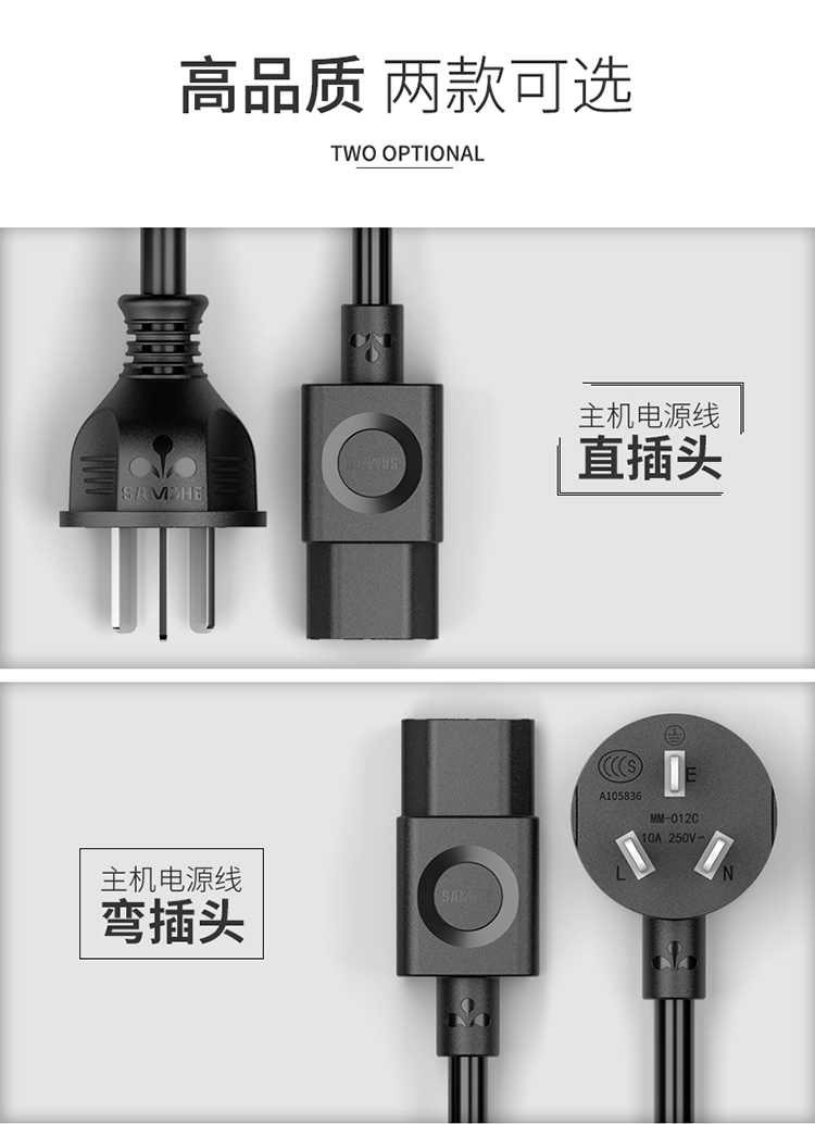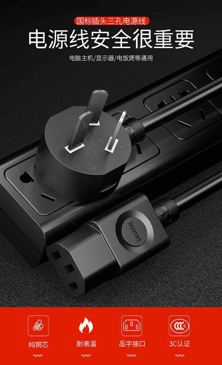 山澤(SANZHE)電腦主機國標(biāo)電源線 品字尾三孔電源連接線 適用電腦主機顯示器電飯煲 彎插頭0.5米WTDY05
