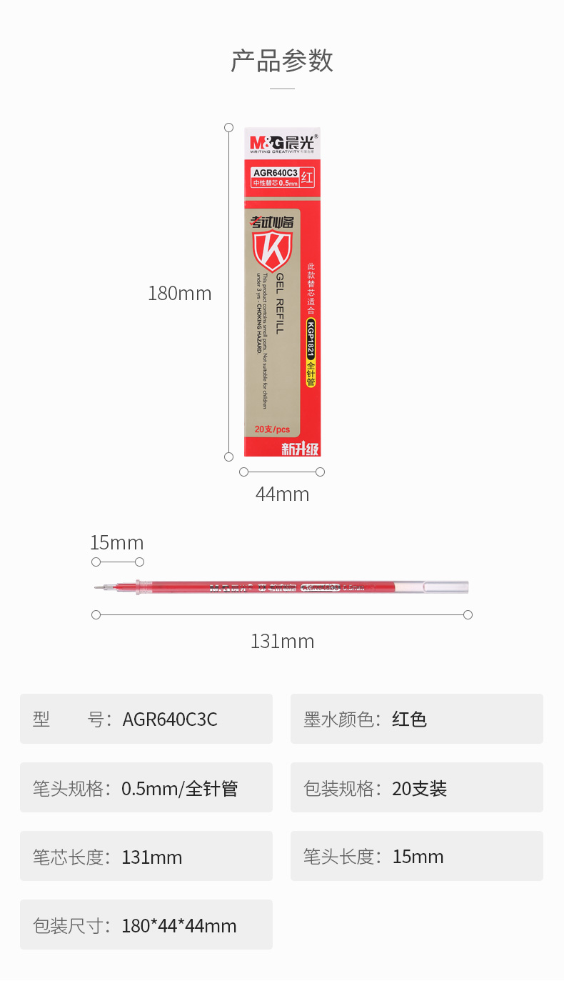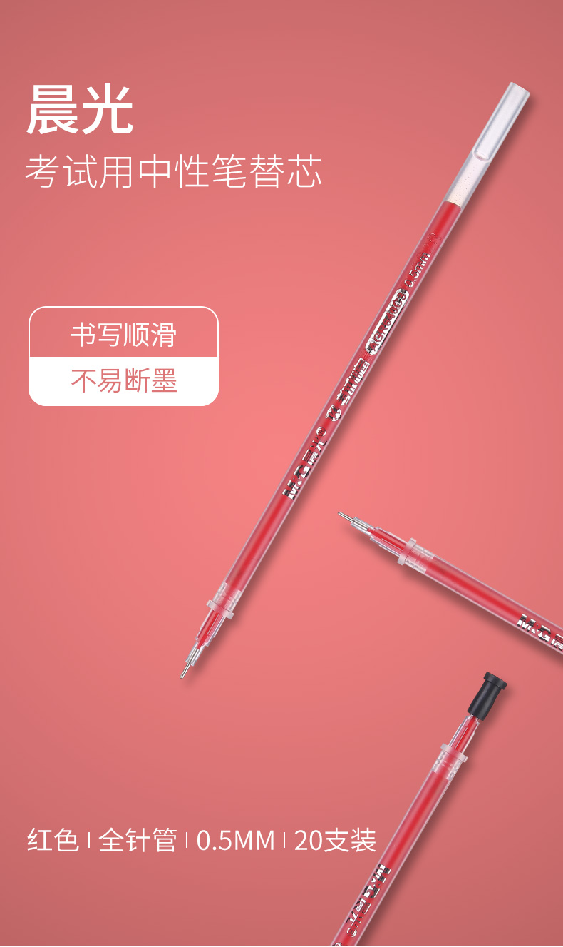 晨光(M&G)0.5mm全針管簽字筆替芯AGR640C3/20支裝(紅色)