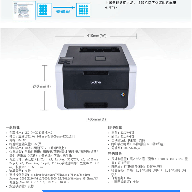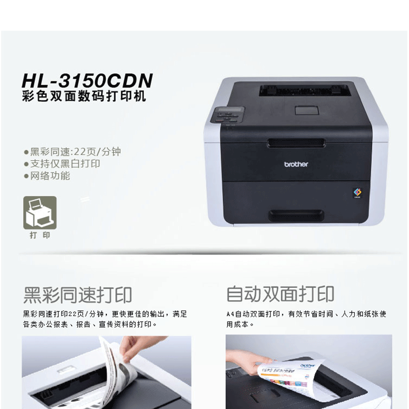 兄弟(brother) HL-3150CDN 彩色數(shù)碼打印機 黑彩同速22頁/分鐘